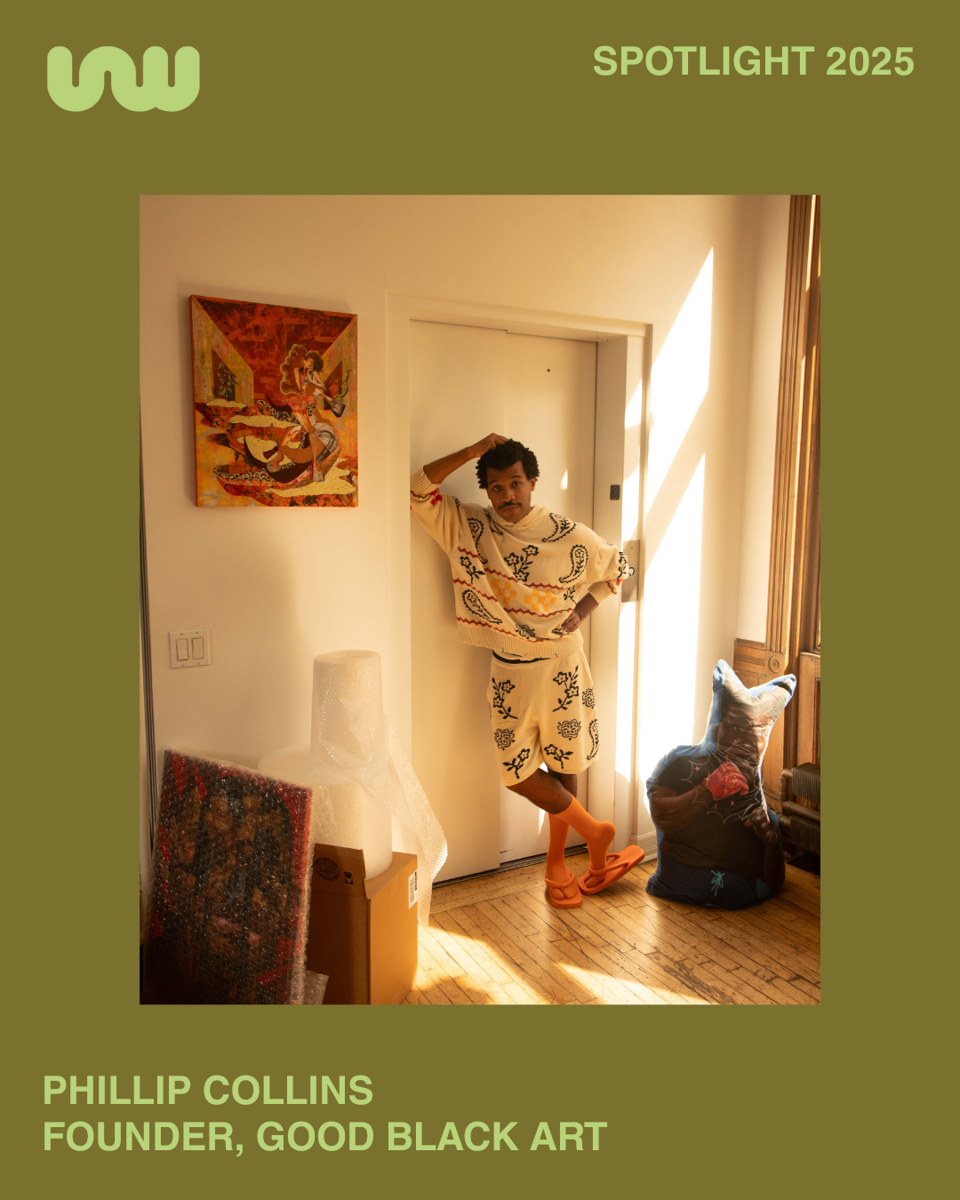 Can you tell us a little bit about what you do? And how long you’ve been in your current position. Of course. I’m Phillip Collins—founder of Good Black Art. I’m a Black, queer art collector and marketer, originally from Tennessee and now based in New York. I’ve spent my entire career helping heritage industries and brands reach new markets that have historically been overlooked, working across Asia, Europe, the Middle East, and North America. I’m still doing that work, but now I’ve focused my energy on bringing art to communities that haven’t had access.