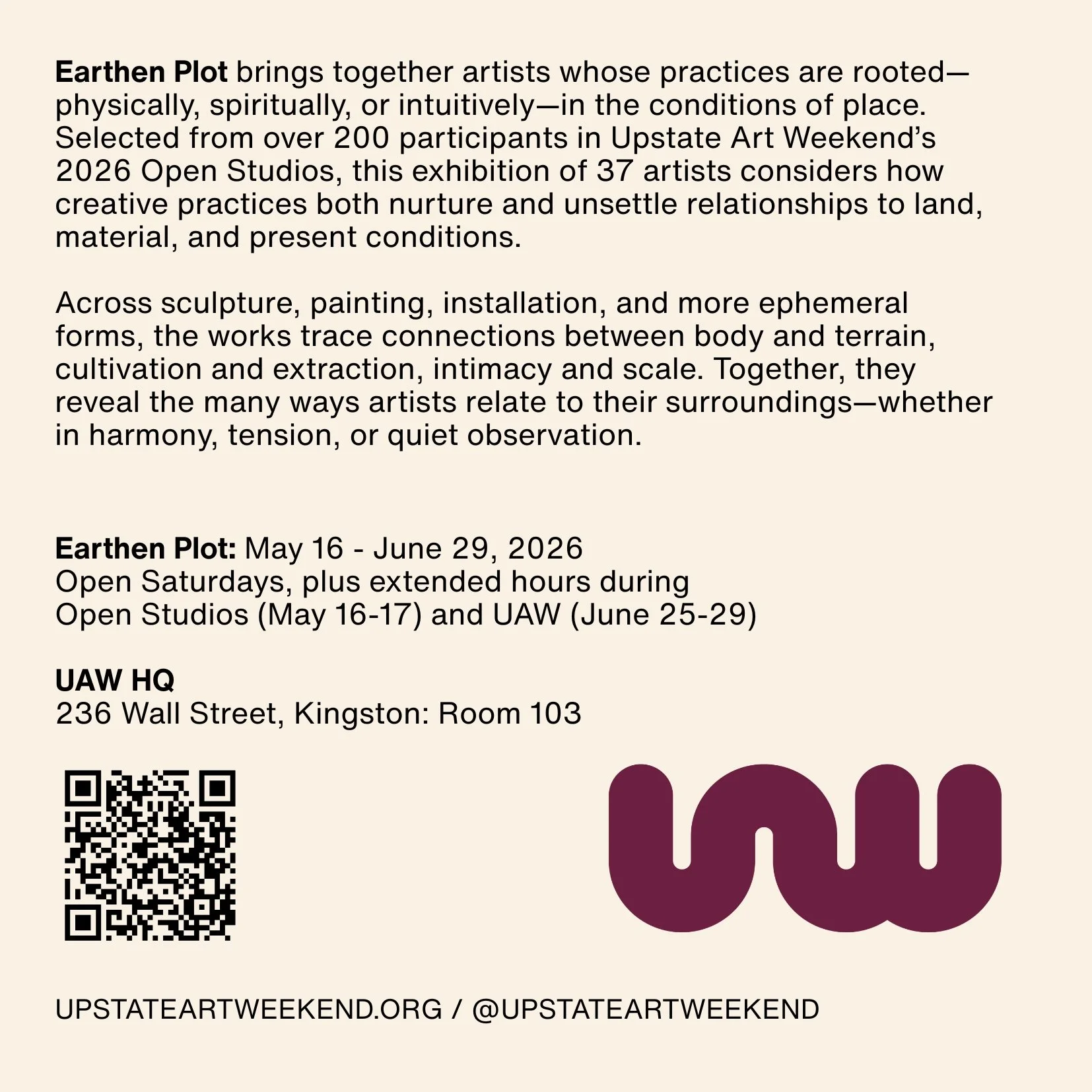 UAW is proud to present Earthen Plot which brings together artists whose practices are rooted—physically, spiritually, or intuitively—in the conditions of place. Selected by UAW founder Helen Toomer from over 200 participants in Open Studios by UAW, this exhibition, hosted at UAW’s HQ in Kingston, of 37 artists considers how creative practices both nurture and unsettle relationships to land, material, and present conditions.
